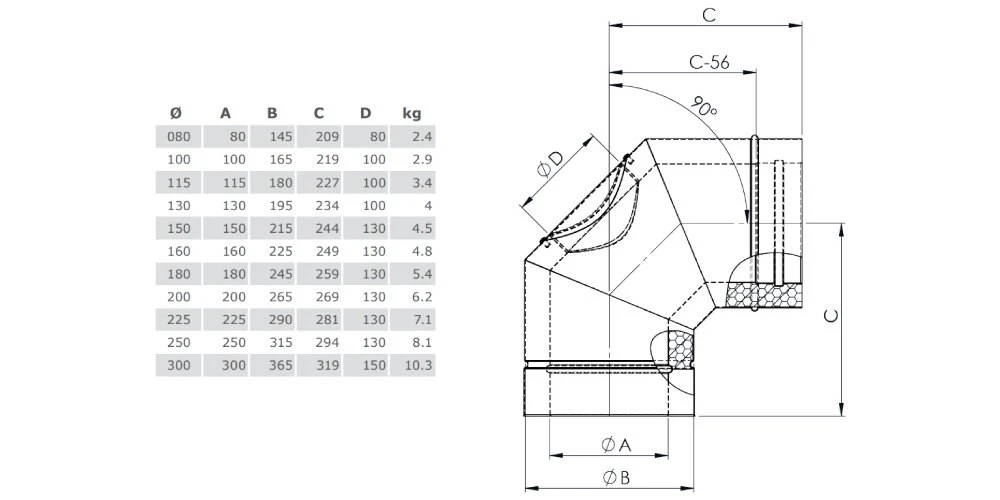 Winkel 90° mit Revisionsöffnung für Ihren Kupferschornstein.