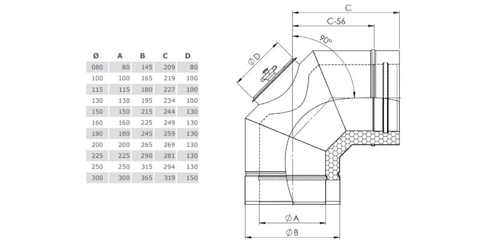 1x Winkel 90° mit Revisionsöffnung für Festbrennstoffe – doppelwandig für System DW-FU von Jeremias