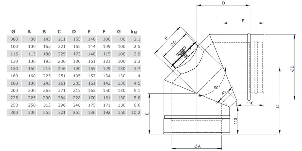 Winkel 90° mit Revisionsöffnung für Öl und Gas.