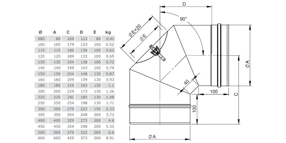 1x Winkel 90° starr mit Revisionsöffnung für System EW-FU von Jeremias