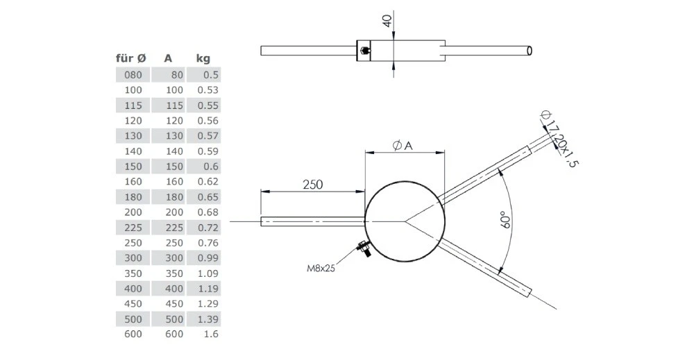 | Materialstärke (Schornstein) (mm) | 0,6 |